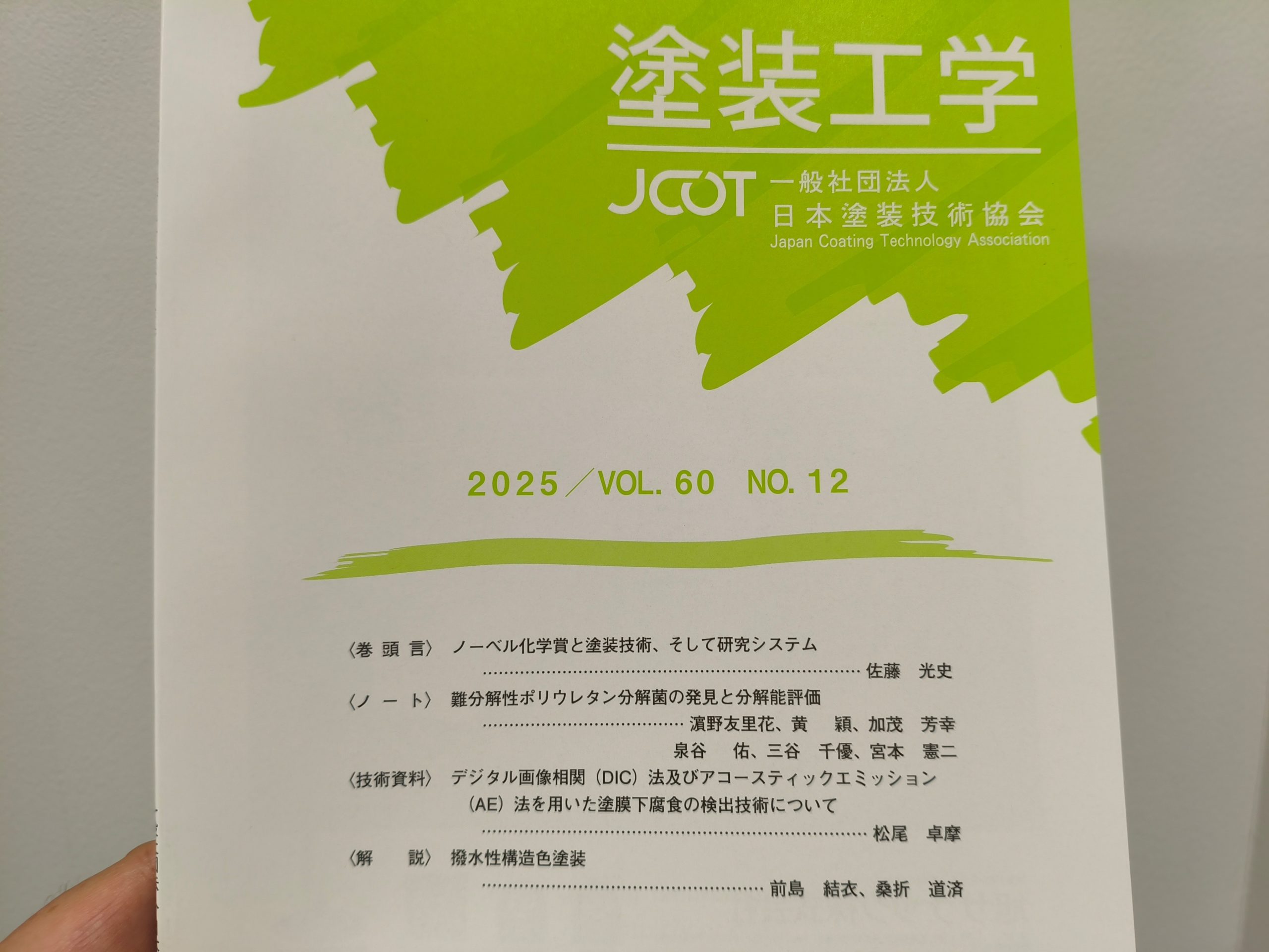 浜野さんの成果が塗装工学に掲載されました! 成果発表 2025.12.19 浜野さんが見出したポリウレタン分解菌に関する論文が塗装工学の12月号に掲載されました(査読あり)。大変すばらしいことだと思います。